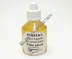 Pájecí kapalina PERFEKT je bezoplachovétavidlo vhodné jak pro ruční,tak i pro strojní pájení v elektronice.Toto tavidlo se nehodípro pájení otevřenýmohněm, neboť se jednáo hořlavinu první třídy!Na pájené místo senejlépe nanáší štětcem,a vzhledem k jeho vysokéúčinnosti, jen v nepatrnémmnožství.
