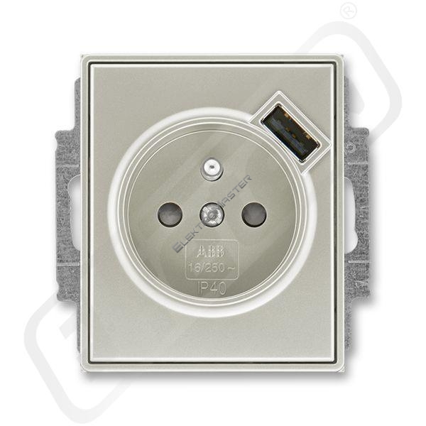 | Time#, Time# Arbo | Zásuvky | Zásuvka s USB nabíjením, jednonásobná bezšroubová | starostříbrná || Pro současné používání zásuvky a nabíjení mobilního koncového zařízení se standardním nabíjecím rozhraním dle ČSN EN 62684 pomocí USB kabelu typu A. Elektronická ochrana před zkratem a přetížením. Výstupní napětí: 5 V DC # 5 % (SELV). Jmenovitý proud USB zásuvky: 700 mA. Vestavná hloubka: 35 mm. Nelze používat k datovému přenosu. 16 A, 250 V AC |
