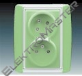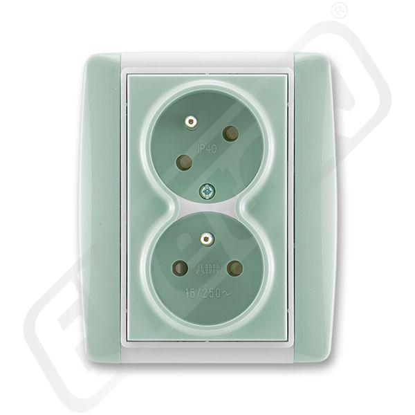 | Element# | Zásuvky | Zásuvka dvojnásobná bezšroubová, s clonkami, s natočenou dutinou | agáve / ledová bílá || IP 40. 16 A, 250 V AC |