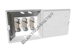 | Přípojková pojistková skříň pro jištění odběrů do 100 A, osazená jednou sadou pojistkových spodků velikosti 00 s připojením vodičů do konstrukční H svorky pojistkového spodku. |