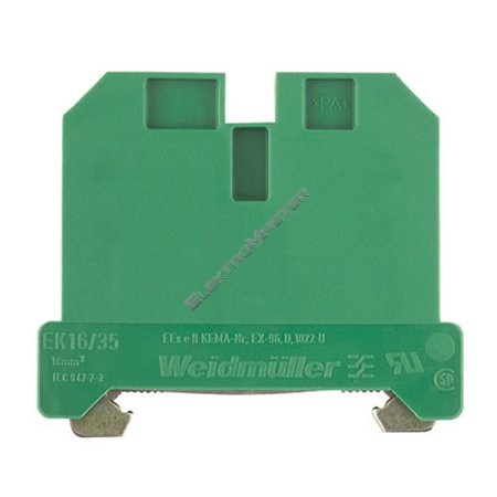| Connections. PE terminal, Screw connection, 16 mm?, 800 V, Number of connections: 2, Number of levels: 1, Yellow, Green,