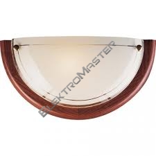 | Žárovkové, stropní a nástěnné dekorativní svítidlo určené k osvětlováníinteriérů. Skládá se z kovové základny, která je povrchově upravenapráškovým plastem, postranního drěvěného lemu - mahagon -lak matný,mosazných sroubů a emailovaného skla. |