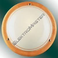 Žárovkové, stropní a nástěnné dekorativní svítidlo určené k osvětlováníinteriérů. Skládá se z kovové základny, která je povrchově upravenapráškovým plastem, postranního drěvěného lemu - olše -lak matný ,mosazných sroubů a emailovaného skla.