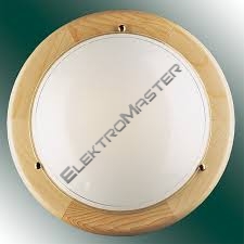 | Žárovkové, stropní a nástěnné dekorativní svítidlo určené k osvětlováníinteriérů. Skládá se z kovové základny, která je povrchově upravenapráškovým plastem, postranního lemu ze světlého, lakovaného dřeva,mosazných sroubů a emailovaného skla. |
