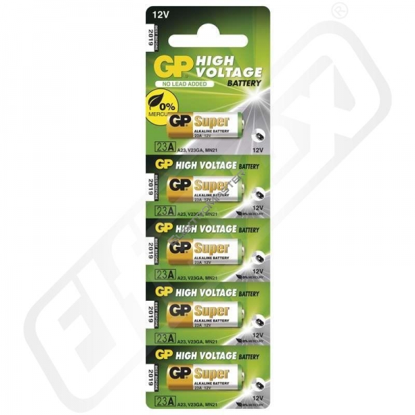 | GP 23AE (V23GA, MN21, A23), 12V jmenovitá kapacita: 55 mAh (při zátěži 20 kOhm) rozměry: průměr 10,22 x 28,5 mm hmotnost: 7,9 g prodejní obal: 5 ks, blistr GP BAT. SPEC. 23AE 5BL |