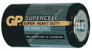 R20 (velké mono, D), 1,5 V rozměry: průměr 34,2 x 61,5 mm prodejní obal: 2 ks, fólie GP BAT. SUPERCELL R20 2SH |