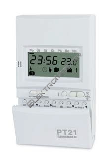 | Termostat PT 21 prostorový, drátový, 230V, digital, 6 nastavení teplot za den, min.progarm 10min.2x1,5V AA |