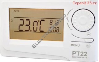 | Termostat PT22 prostorový digitální, drátový, 230V, digital podsvícený, 6 nastavení teplot za den,minimální program 10min. 2x1,5V AA, |