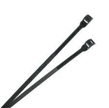 | Stahl-Kabelbinder aus Edelstahl 316 (DIN 14401), mit Kugelverschluss, korrosions- und strahlenbeständig, antimagnetisch, äußerst beständig gegen hohe Temperaturen (Stahl -80°C bis +538°C) und aggressive Chemikalien, Stahldicke 0,25mm, Spez./Zulassung UL. Zur Anwendung im Maschinen-, Fahrzeug-, Signal-, Schiff- und Bergbau, in der Lebensmittel- und chemischen Industrie, in Kraftwerken, U-Bahnen, Gebäuden, Schaltschränken, auf Bohrinseln usw., BxL 7,9x520mm, Kabelbaum¸ 152mm, 122kp/1200N.