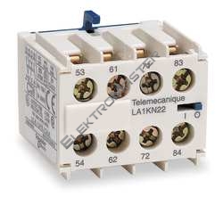 TeSys K, blok pomocných kontaktů, 2Z+2V, šroubové svorky. řada výrobků: TeSys K řídící relé, TeSys K - řada: TeSys - označení přístroje: LA1 - typ produktu nebo součásti: pomocný blok kontaktu - složení kontaktů: 2 Z + 2 V - připojení - svorky: šroubové svorky 1 kabel 0,34...1,5 mm? - tuhost kabelu: ohebný - ano kabelová koncovka, šroubové svorky 2 kabel 0,75...4 mm? - tuhost kabelu: ohebný -ne kabelová koncovka, šroubové svorky 1 kabel 0,75...4 mm? - tuhost kabelu: ohebný - ne kabelová koncovka, šroubové svorky 2 kabel 1,5...4 mm? - tuhost kabelu: pevný, šroubové svorky 1 kabel 1,5...4 mm? - tuhost kabelu: pevný, šroubové svorky 2 kabel 0,34...1,5 mm? - tuhost kabelu: ohebný - ano kabelová koncovka. Výhody: .. Aplikace: .. Výhody: Kompaktní výkon. Tesys K tvoří řadu reverzačnícha nereverzačních stykačů, nabízí nejlepší poměr výkon/rozměr a snadnou integraci do všech vašich aplikací.... Aplikace: Průmysl, infrastruktura, oblast bydlení, energetika, apod.: ., Jednoduché řídicí systémy., Stykače se sníženou hlučností pro průmyslově 'zněčištěné' sítě nebo stroje v interiérech., Stykače s nízkou spotřebou kompatibilní s polovodičovými výstupy z PLC.. Výhody: .. Aplikace: Výrobci strojů a výrobci rozváděčů všech oblastí průmyslu..