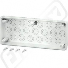 | Nízkonapetový rozvádec zapouzdrený izolacním materiálem jako skrínový systém, "typove zkoušená kombinace rozvádecu" TSK podle IEC 60 439 -1 k montáži na stenu. Skríne musí být vhodné k montáži do venkovního prostredí, je treba respektovat klimatické vlivy a dopady na provozní prostredky. Spodní cásti a víko skríne z odolného polykarbonátu, bez halogenu a silikonu barva RAL 7032, víko pruhledné s rychlouzávery pro ovládání nástrojem. Požární odolnost podle DIN VDE 0471 cást 2 zkouška žhavou smyckou 960°C. Maximální absorpce vody 10 mg podle DIN 53473. Ochranné opatrení: S ochrannou izolací (trída ochrany II). Výrobek: HENSEL Mi-rozvadec. Montážní príruba Mi FM 25, 19 x M 16/25, pro stenu skríne 300 mm |