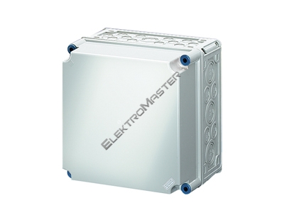 | Nízkonapetový rozvádec zapouzdrený izolacním materiálem jako skrínový systém, "typove zkoušená kombinace rozvádecu" TSK podle IEC 60 439 -1 k montáži na stenu. Skríne musí být vhodné k montáži do venkovního prostredí, je treba respektovat klimatické vlivy a dopady na provozní prostredky. Spodní cásti a víko skríne z odolného polykarbonátu, bez halogenu a silikonu barva RAL 7032, víko pruhledné s rychlouzávery pro ovládání nástrojem. Požární odolnost podle DIN VDE 0471 cást 2 zkouška žhavou smyckou 960°C. Maximální absorpce vody 10 mg podle DIN 53473. Ochranné opatrení: S ochrannou izolací (trída ochrany II). Výrobek: HENSEL Mi-rozvadec. Prázdná rozvodnice s nepruhledným víkem Krytí: IP 65 podle IEC 60 529 |