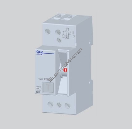 In 25 A, Ue AC 230 V, Idn 30 mA, 2pól, Inc 10 kA, typ AC