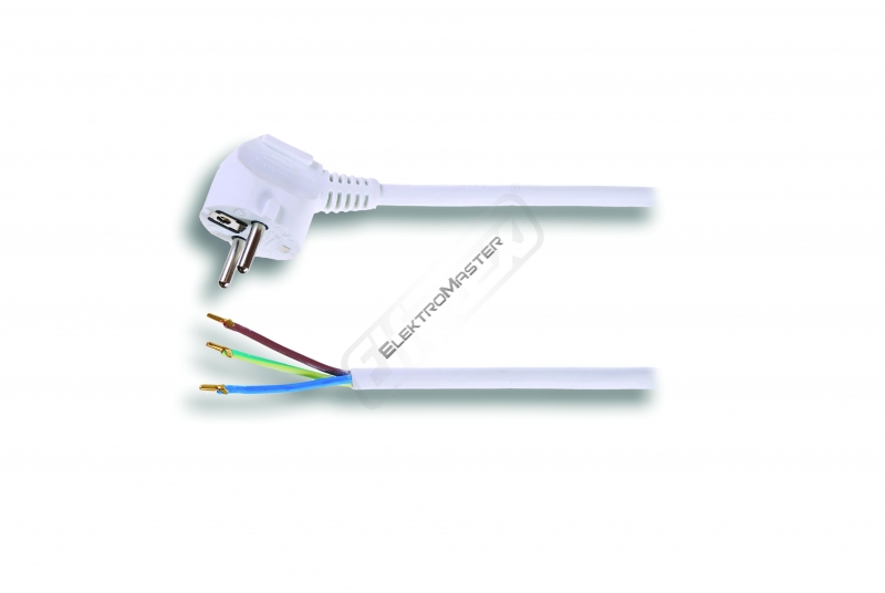 Flexo šňůra s neoddělitelnou úhlovou vidlicíí s PVC izolací. Flexo šňůra má třížilový pohyblivý přívod. Délka flexo šňůry je 2 m. Barevné provedení flexo šňůry je bílá.
