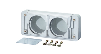 Nízkonapetový rozvádec zapouzdrený izolacním materiálem jako skrínový systém, "typove zkoušená kombinace rozvádecu" TSK podle IEC 60 439 -1 k montáži na stenu. Skríne musí být vhodné k montáži do venkovního prostredí, je treba respektovat klimatické vlivy a dopady na provozní prostredky. Spodní cásti a víko skríne z odolného polykarbonátu, bez halogenu a silikonu barva RAL 7032, víko pruhledné s rychlouzávery pro ovládání nástrojem. Požární odolnost podle DIN VDE 0471 cást 2 zkouška žhavou smyckou 960°C. Maximální absorpce vody 10 mg podle DIN 53473. Ochranné opatrení: S ochrannou izolací (trída ochrany II). Výrobek: HENSEL Mi-rozvadec. Vestavná príruba Mi FP 82, 2 x ? 30 až 72, jako zasunutí kabelu, IP 54, se stupnovitými vývodkami, pro stenu skríne 300 mm
