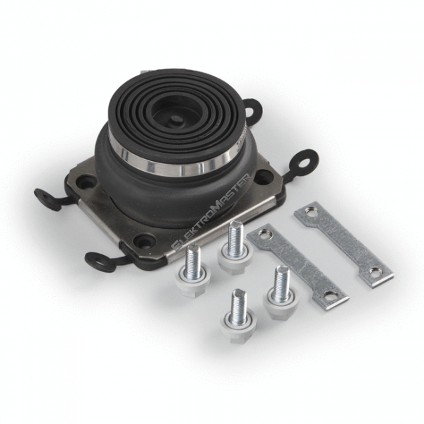 Pružná kabelová průchodka PK69T 27-66mm, s přírubou a upevňovacími šrouby. Hmotnost 0,27kg, rozměry 108x89x60mm. Max.provozní teplota 85° C.