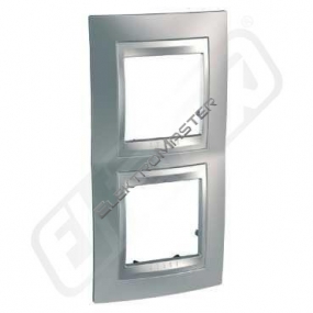Unica Top, krycí rámeček, dvojnásobný chrome/aluminium. označení řady: Unica Top - typ produktu nebo součásti: krycí rámeček. Výhody: .. Aplikace: Obytné a kancelářské budovy Zapuštěné nebo povrchově montované instalace..