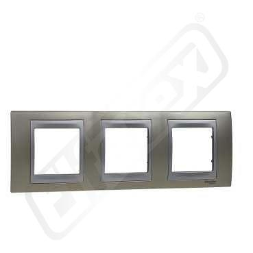 Unica Top, krycí rámeček, trojnásobný, H71, opal titanium/aluminium. označení řady: Unica Top - typ produktu nebo součásti: krycí rámeček - násobnost: 3 násobný vodorovná, 3 násobný svislá. Výhody: .. Aplikace: Obytné a kancelářské budovy Zapuštěné nebo povrchověmontované instalace..