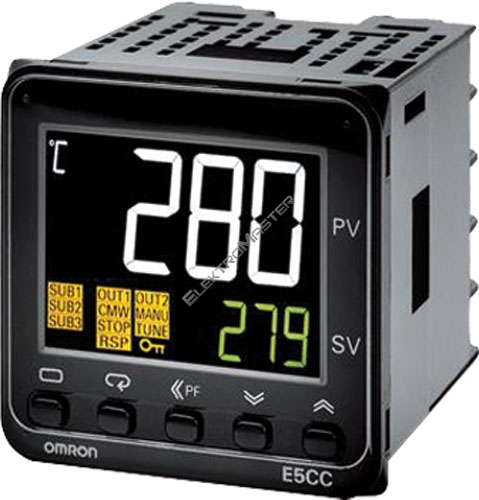 regulátor teploty 48x48mm (1/16DIN), řídicí výstup 1 : reléový (250VAC, 3A), 3 pomocné výstupy, napájení 100-240VAC, šroubová svorkovnice s krytem, multifunkční vstup, bez zvláštního provedení, standardní specifikace, černé provedení, PV zobrazení bílé,