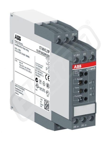 Napájecí napětí: 24 - 240 V AC/DC, řídící vstup, časový rozsah: 0,05 s - 300 h, výstupní kontakty: 2SPDT, multifunkční časové relé