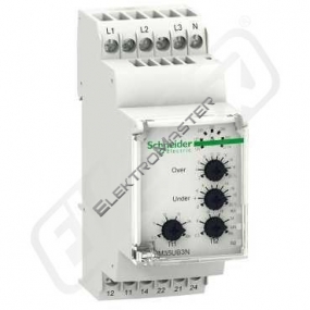 Napěťové řídicí relé RM35, U, rozsah 114..329 V AC. řada výrobků: Zelio Control - typ produktu nebo součásti: modulární měřicí a kontrolní relé - typ relé: relé pro kontrolu napětí - použití výrobku: pro 3fázové napájení - označení relé: RM35UB3 - parametry monitorovacího relé: bez N (neutral), přepětí a podpětí mezi fázemi, přepětí a podpětí mezi N - spínací schopnost ve VA: 1250 VA - kategorie použití: AC-12 vyhovuje IEC 60947-5-1, AC-13 vyhovuje IEC 60947-5-1, AC-14 vyhovuje IEC 60947-5-1, AC-15 vyhovuje IEC 60947-5-1,DC-12 vyhovuje IEC 60947-5-1, DC-13 vyhovuje IEC 60947-5-1, DC-14 vyhovuje IEC 60947-5-1. Výhody: .. Aplikace: .. Výhody:
