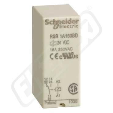 Paticové relé pro rozhraní, Zelio RSB, 1 V/Z, 24 V DC, 16A. řada výrobků: Zelio Relay - název řady: relé pro rozhraní - typ produktu nebo součásti: paticové relé - označení přístroje: RSB - složení a typ kontaktů: 1 V/Z - funkce kontaktu: standardní - signalizacestavu LED: ne - typ ovládání: bez tlačítka. Výhody: .. Aplikace: .. Výhody: