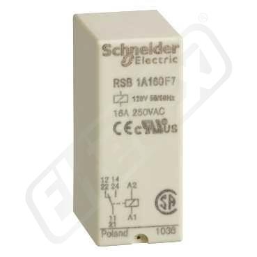 Paticové relé pro rozhraní, Zelio RSB, 1 V/Z, 120 V AC, 16A. řada výrobků: Zelio Relay - název řady: relé pro rozhraní - typ produktu nebo součásti: paticové relé - označení přístroje: RSB - složení a typ kontaktů: 1 V/Z - funkce kontaktu: standardní - signalizace stavu LED: ne - typ ovládání: bez tlačítka. Výhody: