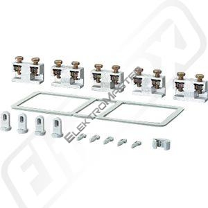 Nízkonapetový rozvádec zapouzdrený izolacním materiálem jako skrínový systém, "typove zkoušená kombinace rozvádecu" TSK podle IEC 60 439 -1 k montáži na stenu. Skríne musí být vhodné k montáži do venkovního prostredí, je treba respektovat klimatické vlivy a dopady na provozní prostredky. Spodní cásti a víko skríne z odolného polykarbonátu, bez halogenu a silikonu barva RAL 7032, víko pruhledné s rychlouzávery pro ovládání nástrojem. Požární odolnost podle DIN VDE 0471 cást 2 zkouška žhavou smyckou 960°C. Maximální absorpce vody 10 mg podle DIN 53473. Ochranné opatrení: S ochrannou izolací (trída ochrany II). Výrobek: HENSEL Mi-rozvadec. Spojovací sadaprípojnic Mi SV 45, pro prípojnice 5-pólové, 400 A / 630 A, s tesnením steny