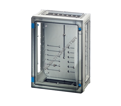 Variabilní systém skríní s dvermi pro výstavbu nízkonapetových rozvodných zarízení do 250 A jako typove zkoušený systém (TSK) dle IEC 60 439-1 pro montáž na stenu. Skríne jsou vhodné k montáži do venkovního prostredí, je treba respektovat klimatické vlivy a dopady na provozní prostredky. Spodní cásti skríne a dvere z polykarbonátu odolného proti nárazu, bez halogenu a silikonu, barva RAL 7035. Všechny skríne s dvermi, které lze uzamknout a zaplombovat. Ovládání zarízení se provádí z prostoru za dvermi. Požární odolnost v souladu s IEC 60 695-2-11 zkouška žhavicím drátem 960°C. Ochranné opatrení: S ochrannou izolací (trída ochrany II). Výrobek: Hensel ENYSTAR. Elektromerová skrín s dvermi a šrouby pro uchycení pocítadla, max. instalacní hloubka 136 mm. Krytí: IP 65 dle IEC 60 529.