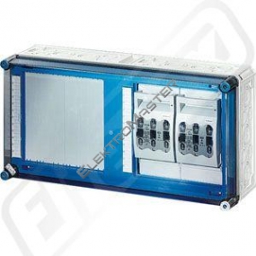 Nízkonapetový rozvádec zapouzdrený izolacním materiálem jako skrínový systém, "typove zkoušená kombinace rozvádecu" TSK podle IEC 60 439 -1 k montáži na stenu. Skríne musí být vhodné k montáži do venkovního prostredí, je treba respektovat klimatické vlivy a dopady na provozní prostredky. Spodní cásti a víko skríne z odolného polykarbonátu, bez halogenu a silikonu barva RAL 7032, víko pruhledné s rychlouzávery pro ovládání nástrojem. Požární odolnost podle DIN VDE 0471 cást 2 zkouška žhavou smyckou 960°C. Maximální absorpce vody 10 mg podle DIN 53473. Ochranné opatrení: S ochrannou izolací (trída ochrany II). Výrobek: HENSEL Mi-rozvadec. Rozvodnice s NH pojistkovými odpínaci velikosti NH 00, 3-pólová montováno prímo na 5-pólové prípojnice Krytí: IP 65 podle IEC 60 529