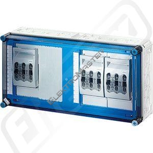 Nízkonapetový rozvádec zapouzdrený izolacním materiálem jako skrínový systém, "typove zkoušená kombinace rozvádecu" TSK podle IEC 60 439 -1 k montáži na stenu. Skríne musí být vhodné k montáži do venkovního prostredí, je treba respektovat klimatické vlivy a dopady na provozní prostredky. Spodní cásti a víko skríne z odolného polykarbonátu, bez halogenu a silikonu barva RAL 7032, víko pruhledné s rychlouzávery pro ovládání nástrojem. Požární odolnost podle DIN VDE 0471 cást 2 zkouška žhavou smyckou 960°C. Maximální absorpce vody 10 mg podle DIN 53473. Ochranné opatrení: S ochrannou izolací (trída ochrany II). Výrobek: HENSEL Mi-rozvadec. Rozvodnice s NH pojistkovými odpínaci velikosti NH 00, 3-pólová montováno prímo na 5-pólové prípojnice Krytí: IP 65 podle IEC 60 529