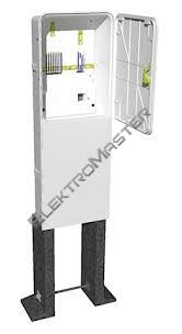 Elektroměrový rozvaděč pro jeden dvousazbový třífázový elektroměr s hlavním jističem do 40 A. Rozvaděč je vydrátován silovými vodiči CY 6 mm2.
