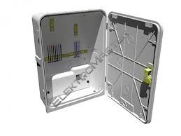 Elektroměrový rozvaděč pro jeden dvousazbový třífázový elektroměr s hlavním jističem do 40 A. Rozvaděč je vydrátován silovými vodiči CY 6 mm2.