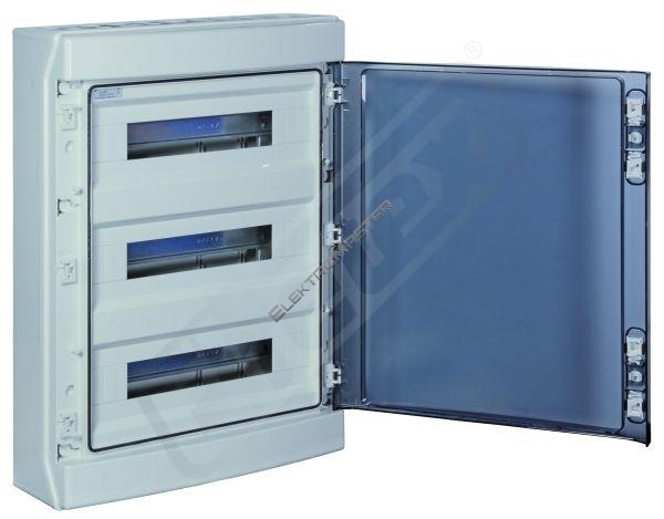pro nástěnnou montáž, krytí IP65, průhledné dveře, počet řad 2, počet modulů v řadě 12, PE+N, barva šedá, materiál ABS