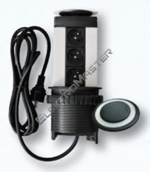 KIT-TELEBLOCK 3x230V/16A, kabel 3m, eloxovaný hliník, černé víko