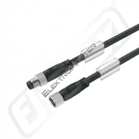 Sensor/actuator cable is used for wiring sensors and actuators and for transmitting data or power in various applications. The moulded cable offers a factory-connected and tested connection of the connector to the cable. The cable may be exposed to a wide range of conditions, such as humidity, dust, heat, cold, shock or vibration. Sensor-actuator Cable (assembled), Connecting line, M8 / M8, 4, 5 m, pin, straight - socket, straight, Shielded: No, LED: No, Halogen: No, PUR, Black, none, jumpered: No