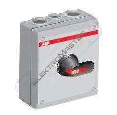 6-pólový odpínač v krytí IP65, plastový, šedý, žluto-červená rukojeť uzamykatelná třemi zámky s indikací 0-1 a OFF-ON, N-, PE- svorky