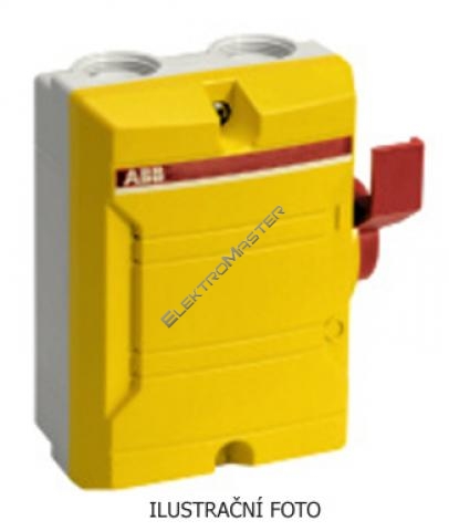 Průmyslové trojpólové spínače | Centrální odpínače | Odpínač centrální trojpólový, 25 A, IP 65 | žlutá || Svorka N pro připojení středního vodiče a jeden pomocný kontakt jsou součástí spínače. Další pomocný kontakt se objednává zvlášť. Kabelový vstup: 2x M32 / 2xM32 + 1x M16. Ie pro AC-23A (AC-22A) při 400 V: 25 A (40 A). Ie pro AC-23A (AC-22A) při 500 V: 25 A (32 A). Ie pro AC-23A (AC-22A) při 690 V: 16 A (32 A). Stupeň krytí: IP 65. 690 V AC