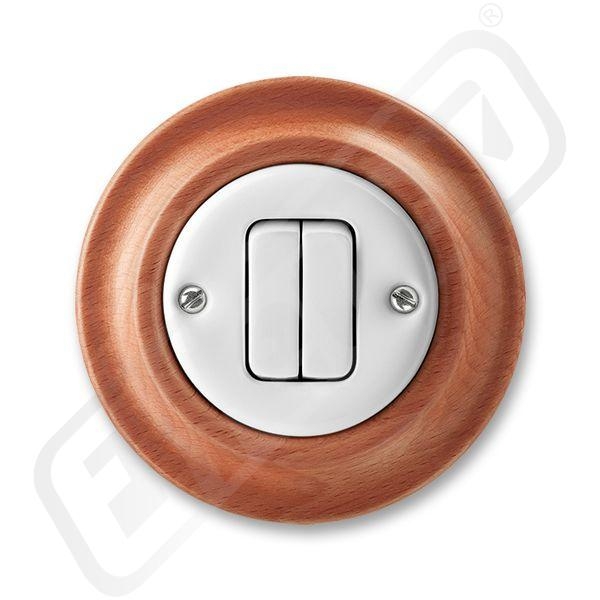 Decento# | Spínače | Přepínač střídavý, dvojitý | bílá / třešeň || 10 AX / 10 A, 250 V AC