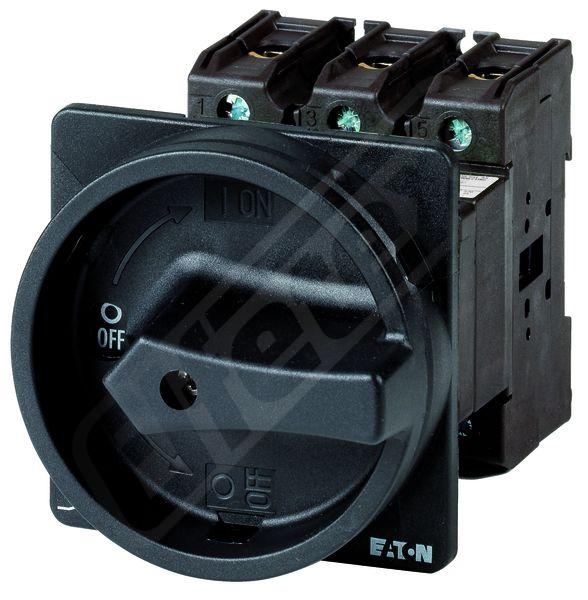 Hlavní spínač/vypínač podle IEC/EN 60947-3, 690V/63A, stupeň krytí vpředu IP65, rukojeť černá s blokovacím věncem černým, uzamykatelná s 3 visacími zámky, konstrukce zátěžových vypínačů P3 je velmi kompaktní a robustní. Ruční pohon působí na kontakty v přímém spojení. Při vypnutí se kontakty nuceně otevřou. Konstrukční formy všeobecně: Skříňky pro povrchovou montáž z izolačního materiálu, montáž, základní montáž, montáž do rozváděče IVS