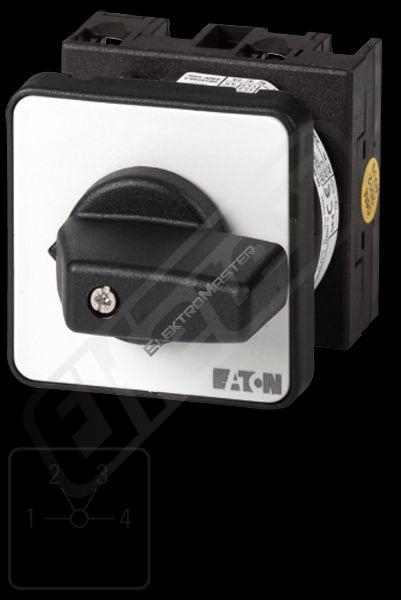 Vačkové spínače podle ČSN/EN60947, konstrukční velikost T0, centrální upevnění do upevňovacího otvoru 22,3 mm, přední štítek 48x48,stupeň krytí vpředu IP65 s černou pákou, jmenovitý trvalý proud Iu 20 A, jmenovité provozní napětí Ue 690V, příslušenství k dodání podle údajů v katalogu Vačkové spínače T. Konstrukční formy všeobecně: skříňky pro povrchovou montáž z izolačního materiálu, montáž,centrální upevnění, základní montáž, montáž do rozváděče IVS