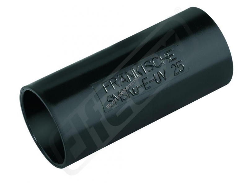 SMSKu-ES-UV je plastová násuvná spojka z modifikovaného PVC, nesírící plamen, UV stabilní v barve cerné RAL 9005. Pouzítí této násuvné spojky je pro plastové pevné trubky FPKu-ES-F-UV cerná a FFKuS-ES-F-UV a pri venkovní instalaci na povrchu. VDE 0605 DIN EN 61386-21
