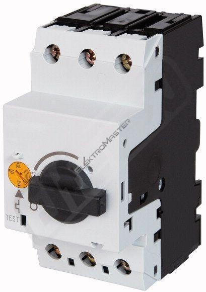 Spouštěč motorů podle ČSN/EN60947, 3pólový konstrukční velikost PKM0, s nezpožděným spouštěčem při zkratu, šroubovaná montáž a montáž zaklapnutím západky, se šroubovými svorkami, rozměr vestavby krytky 45 mm, jmenovité provozní napětí Ue 690V, stupeň krytí IP20, chráněn před dotykem prstem podle VDE 0106 d. 100, příslušenství k dodání: pomocné spínače, napět'ová spoušt', kontaktní modul, svorková deska