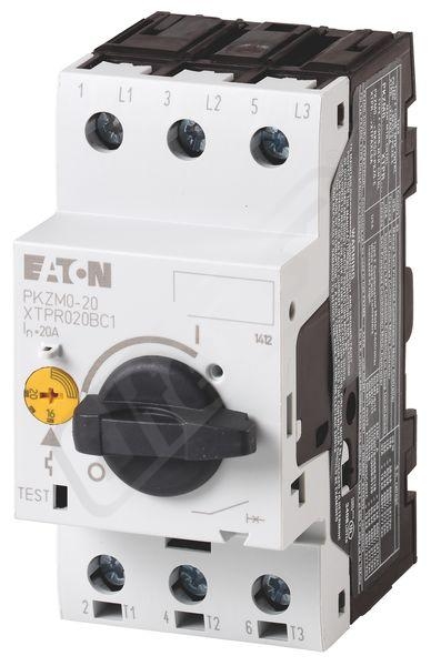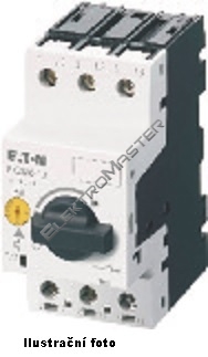 Spouštěč motorů podle ČSN/EN60947, 3pólový konstrukční velikost PKZM0, s nastavitelným spouštěčem při přetížení nezpožděným spouštěčem při zkratu, citlivý na výpadek fáze, šroubovaná montáž a montáž zaklapnutím západky, se šroubovými svorkami, rozměr vestavby krytky 45 mm, jmenovité provozní napětí Ue 690V, stupeň krytí IP20, chráněn před dotykem prstem podle VDE 0106 d. 100, příslušenství k dodání: pomocné spínače, napět'ová spoušt', kontaktní modul, svorková deska