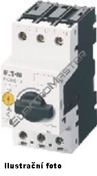 Spouštěč motorů podle ČSN/EN60947, 3pólový konstrukční velikost PKZM0, s nastavitelným spouštěčem při přetížení nezpožděným spouštěčem při zkratu, citlivý na výpadek fáze, šroubovaná montáž a montáž zaklapnutím západky, se šroubovými svorkami, rozměr vestavby krytky 45 mm, jmenovité provozní napětí Ue 690V, stupeň krytí IP20, chráněn před dotykem prstem podle VDE 0106 d. 100, příslušenství k dodání: pomocné spínače, napět'ová spoušt', kontaktní modul, svorková deska