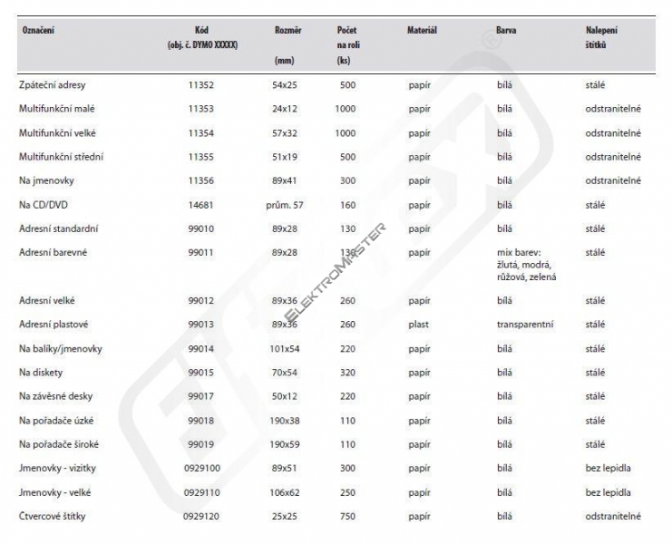 štítky k DYMO LABEL WRITER