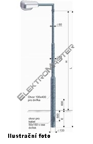 "Osvětlovací stožár bezpaticový - třístupňový, K6-133/89/60 žár.zinek TYPY VÝLOŽNÍKŮ SK, SD. SKA, SKC, SKD, SKE, DA, DB, DC 1-4 ramenné v závislosti na výšce stožáru, nebo lze instalovat svítidlo přímo na dřík. Počet ramen výložníku a jejich délka vyložení je stanovena v závislosti na výšce dříku stožáru a jeho celkovém zatíženi (hmotnost a plocha vlastního výložníku včetně použitých svítidel). POUŽITÍ: Osvětlení sadů, parků, pěších zón a vedlejších komunikací POVRCHOVÁ ÚPRAVA: -žárové zinkování dle normy DIN EN ISO 1461 -žárové zinkování s vrchním nátěrem dle tabulek RAL (DUPLEX SYSTEM) PROVEDENÍ: -spodní část dříku nad zemí je opatřena otvorem s dvířky pro montáž elektropříslušenství -ve spodní části dříku pro vetknutí jsou zhotoveny 2 otvory pro průchod kabelů VARIANTY STOŽÁRŮ: -vetknuté provedení -vetknutý s ochrannou manžetou -s přírubou DOPLŇKOVÝ SORTIMENT: -stožárová výzbroj -stožárová svítidla -světelné zdroje CERTIFIKACE A SHODA: Výrobek svým charakterem odpovídá souboru norem ČSN EN 40 a splňuje požadavky dle CSN EN ISO 3834. Jakost výrobku je řízena dle EN ISO 9001:2001. "
