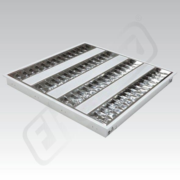 Vestavné kancelářské svítidlo 4x24W T5, 600x600 mm s parabolickou vysoce leštěnou mřížkou.