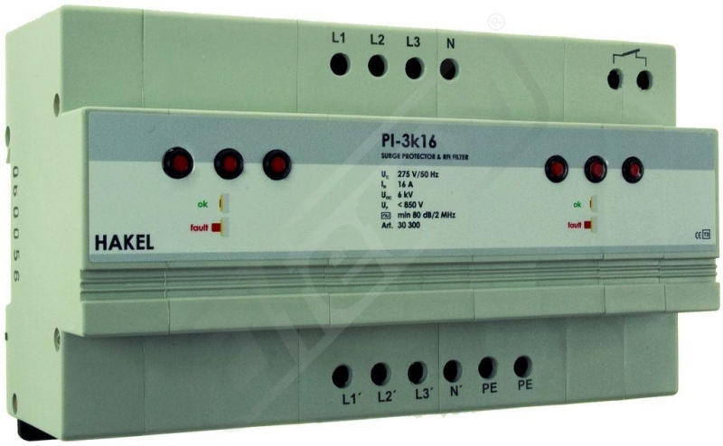 PI-3k je třífázový svodič přepětí typu 3 podle normy EN 61643-11, který je doplněn o vysokofrekvenční filtr. Vyrábí se v ucelené řadě pro jmenovité proudy 16, 25, 32, 50, 63, 80 a 120 A s určením pro aplikace v sítích TN-S a TN-C. Ochrany PI-3k16 a 25 jsou uzpůsobeny k montáži na DIN lištu 35 mm. Ochrany PI-3k32, 50, 63, 80 a 120 se vyrábí v základním provedení pro montáž na šasi pomocí 4 šroubů M4. Pokud je požadavek na jejich montáž na lištu DIN, je nutno toto specifikovat v objednávce s určením, zda se jedná o montáž vhorizontální nebo vertikální poloze.PI-3K jsou určeny k ochraně třífázových elektronických zařízení v rozvodech sítí nn před transientním přepětím a vysokofrekvenčním rušením. Lze je vyrábět v ucelené řadě pro napětí UN = 6, 12, 24, 48, 60, 80, 110, 120, 130, 160a 230V (AC/DC). Porucha varistorů je indikována vysunutím terčíku jezdců mechanických tepelných pojistek, reagujících na přehřátí varistorů nad teplotu cca 120°C.Zapojení bezpotenciálového kontaktu dálkové signalizace.Pokud je jednotka PI-3k funkční, je kontakt dálkové signalizace sepnut. Při zareagování tepelné pojistky se kontakt dálkové signalizace rozpojí.