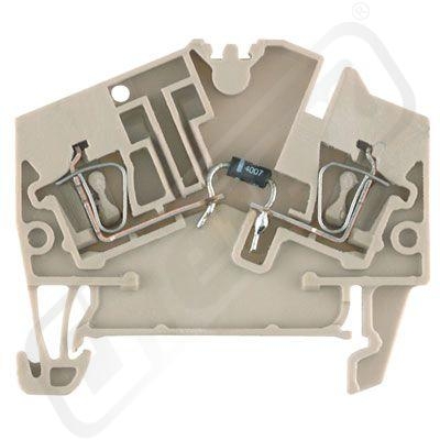 Terminal block with electronic components from diodes to resistors. Component terminal block, Tension clamp connection, 2.5 mm?, 400 V, 1 A, Diode 1N 4007, TS 35, Dark Beige